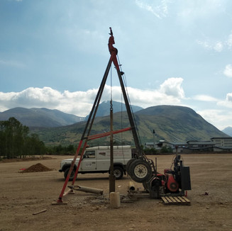 Cable percussion drilling on a site in Fort William at the foot of Ben Nevis.